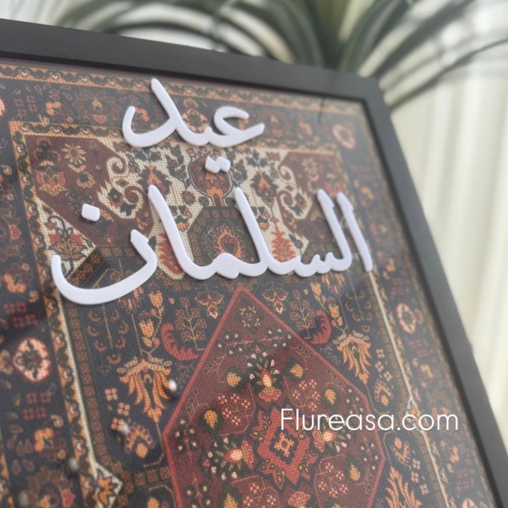 اجعل احتفالات عيد الفطر أكثر بهجة وأناقة مع هذه اللوحة الفاخرة، المصممة خصيصًا لإضافة لمسة راقية إلى أجواء العيد. تتميز بتصميم شرقي مستوحى من السجاد التقليدي، مع خط عربي أنيق يمكن تخصيصه حسب رغبتك. مثالية لوضعها في مدخل الاستقبال أو في أي زاوية تحتفي بالعيد، مما يضفي لمسة جمالية مميزة على المناسبة. تأتي اللوحة بمقاس 45×31 سم، بإطار أسود أنيق وحامل خشبي يعزز من فخامتها. خيار رائع لإثراء أجواء العيد بأسلوب راقٍ ومميز